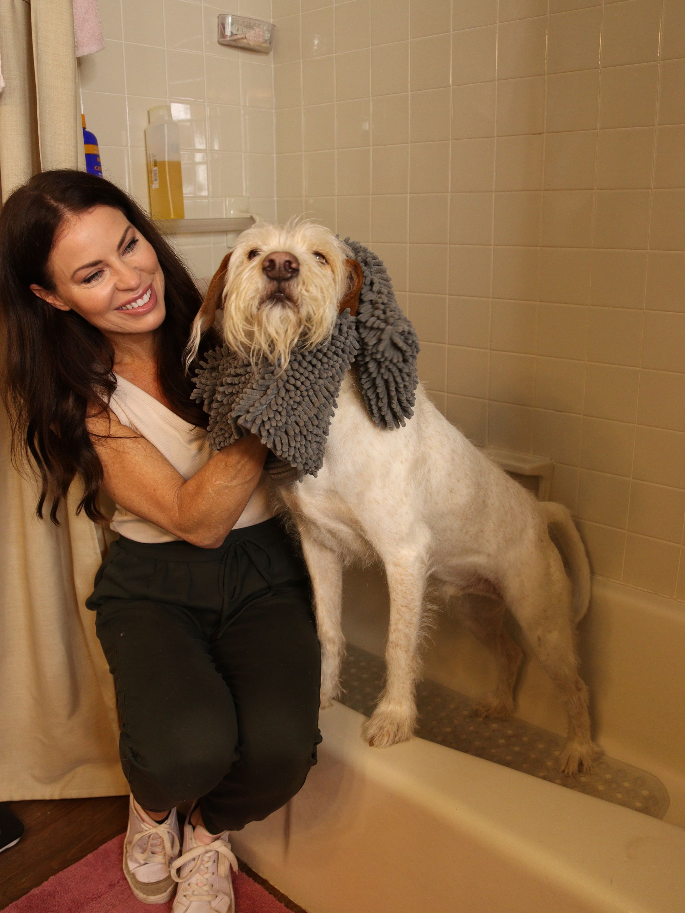 This doggy dryer speaks for itself when it comes to drying soggy pups. I recommended this to so many of my friends with pets and they always comment on how soft and effective it really is at drying after bath time. The best part is, there are no super careful or special care instructions, just throw it in with your normal towels, and it’s as good as new! I absolutely love this product, I can’t wait for more colors to come out!