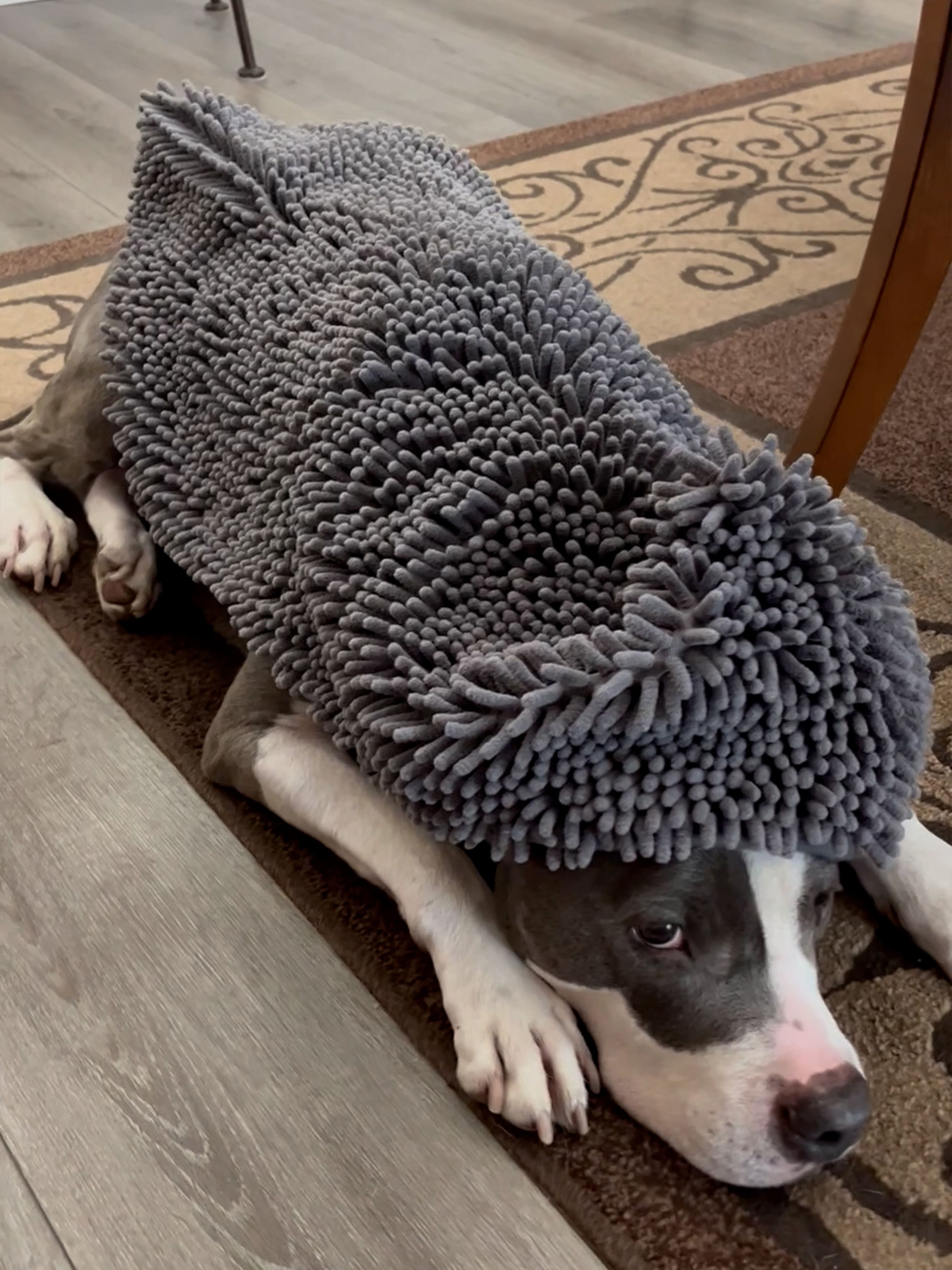 Years using a normal towel, it would take so long to get our poodle to a manageable wet-ness, enough that it wouldn’t stain our carpet floors. I bought this doggy dryer and did not regret it for a second as soon as it came in. It dries her in less than half the time as normal towels, leaving more time for play and less time for clean up. Sticking it in the washer with a hint of fabric softener, and it’s as good as new! I bought 2 more just in case one is still in the wash while its raining, I love these.